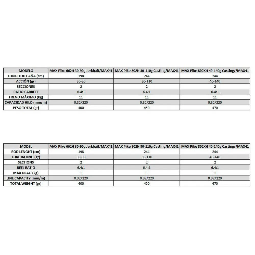 Die Max Pike Combos sind Wurfkombinationen, die der Hechtangler lieben wird! Starke und reaktionsschnelle Hechtruten, die in Kombination mit den Max-LP 41-Rollen eine Vielzahl von Ködern fischen können. Diese Rollen stehen für Kraft, Geschmeidigkeit und Langlebigkeit und bieten jedem Angler ein hervorragendes Angelerlebnis. Diese Sets können in vielen verschiedenen Situationen verwendet werden und können verwendet werden, um selbst sehr schwere und große Köder auf monströse Hechte zu werfen!