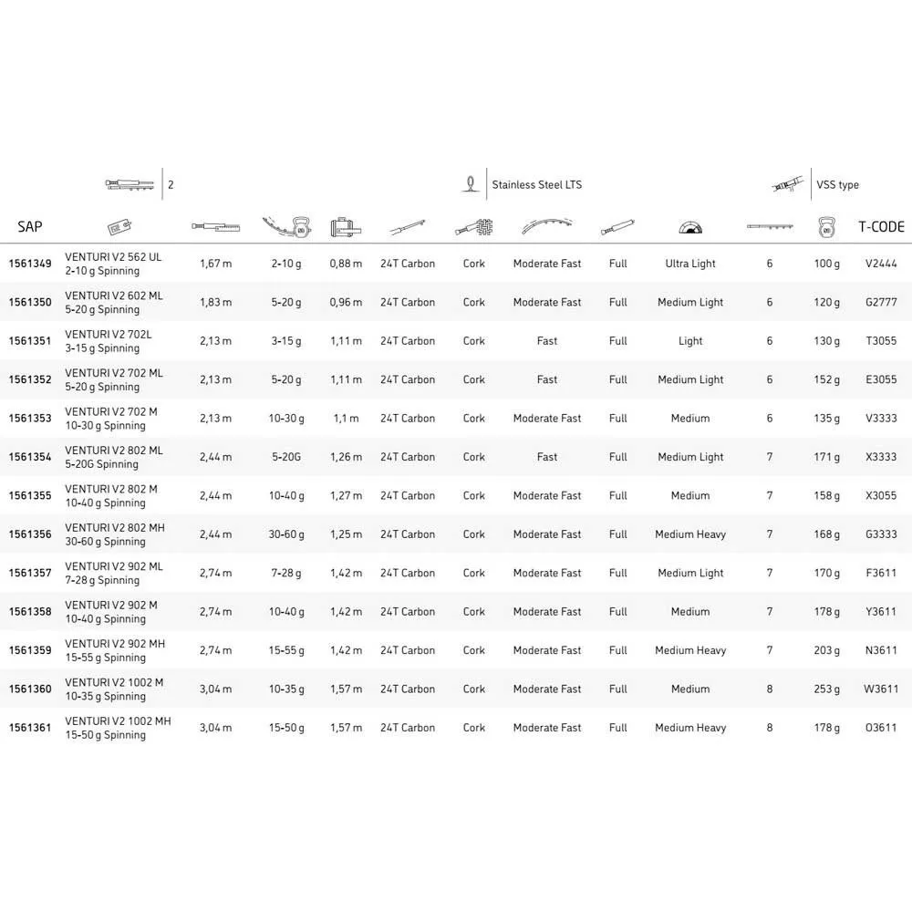 Die Venturi-Rutenserie ist eine vielseitige Serie von Spinn- und Wurfruten, ideal für Allround-Spinn- und Kunstköderangeln. Die Blanks sind stark, leicht und zuverlässig – ebenso wie die Komponenten an der Rute. Gute Qualität und leichte Lts-Führungen aus Edelstahl, ausgestattet mit einem starken und ergonomischen Rollenhalter und einem schönen Vollkorkgriff. Diese Ruten bieten Ihnen jahrelanges Angelvergnügen.